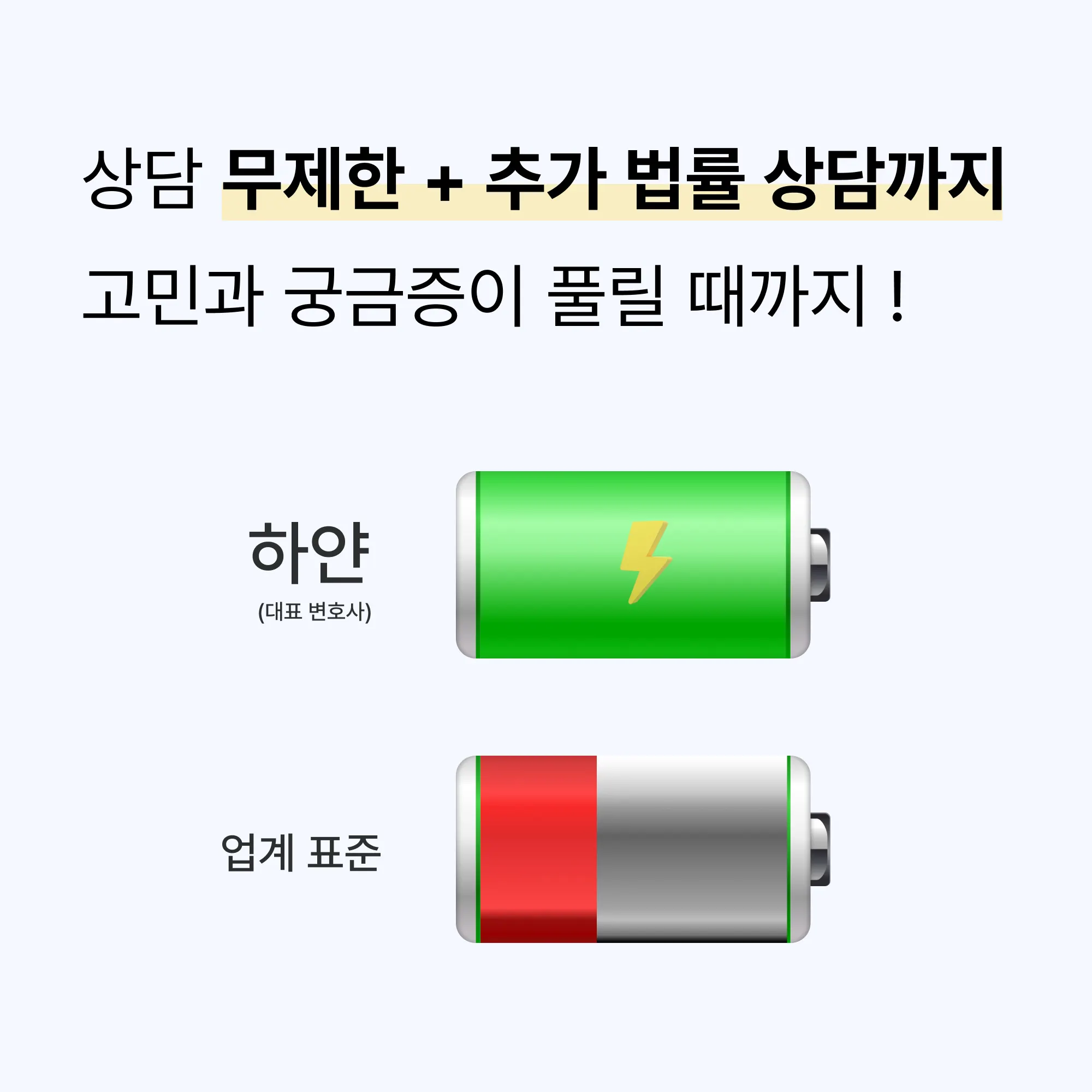 하얀은 사건 수를 제한하여 확보한 시간으로 담당 의뢰인과 무제한 상담을 할 수 있으며, 이를 통해 더욱 완성도 높은 법률 서비스를 제공하는 것입니다. 수임 사건 이외의 내용에 대해서도 법률 상담을 제공합니다.